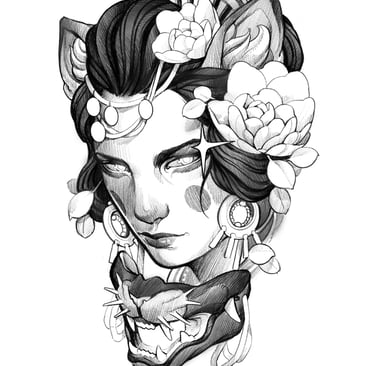 Para diseñar tu tatuaje ideal, haz una breve descripción de tu idea, el tamaño aproximado (en cm o una comparación), el lugar donde quieres tatuarlo, y referencias visuales (pueden ser de mis trabajos o de internet). Si tienes preferencias sobre colores (blackwork o con tonos específicos) o detalles importantes a incluir o evitar, indícalos también. Por último, menciona si tienes un presupuesto o una fecha en mente. ¡Estoy aquí para crear algo único para ti!